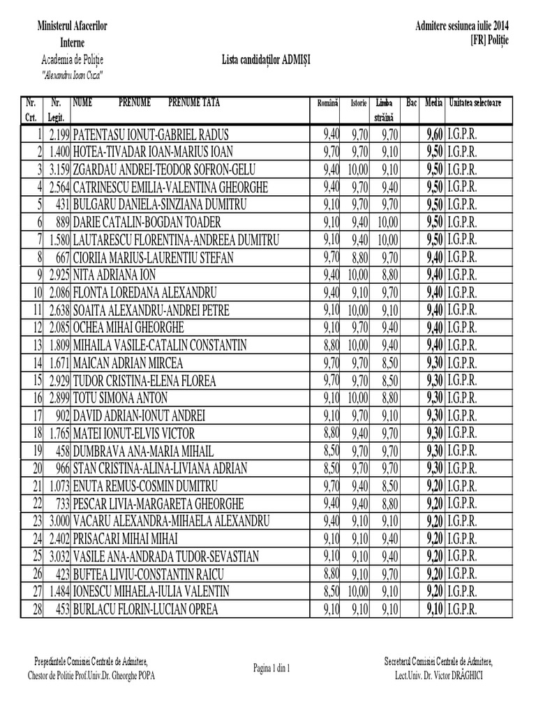 Ultima zi a fost pe 16 iunie. Au apărut notele de admitere de la examenul academiei de poliţie. Academia de poliție este o instituție cu istorie îndelungată, înființată în 1949 sub numele de școala de ofițeri miliție din bucurești.