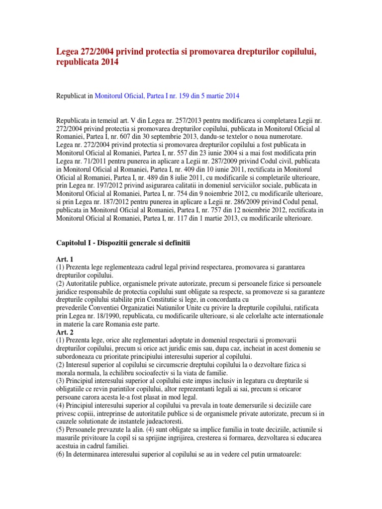 257/2013 pentru modificarea şi completarea legii nr. 272 din 18.03.2004 despre aprobarea proiectului de lege pentru modificarea şi completarea legii nr. (2) părinții au obligația să asigure copilului, de o manieră corespunzătoare capacităților în continuă.
