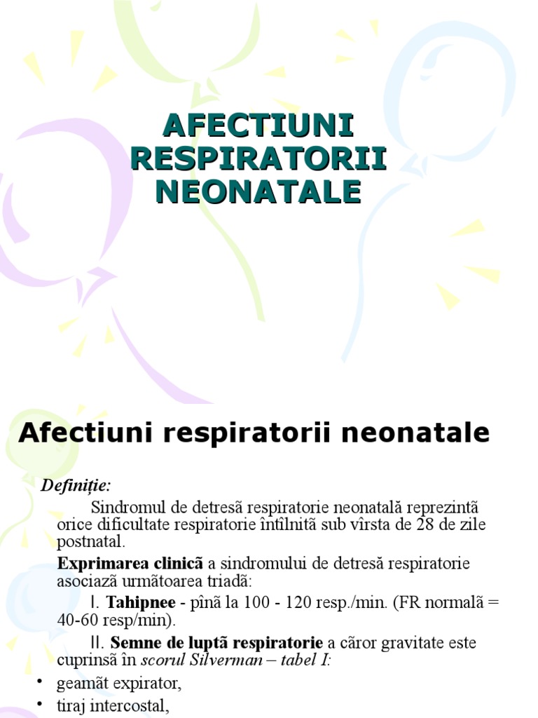 Care sunt simptomele sindromului de detresă respiratorie neonatală? Sindromul de detresa respiratorie neonatala reprezinta orice dificultate in respiratie intalnita sub varsta de 28 de zile. Este o forma particulara a edemului pulmonar acut, asociat cu unele elemente inflamatorii, ca urmare a cresterii permeabilitatii membranei alveolocapilare, n care nsa presiunea capilara este normala.