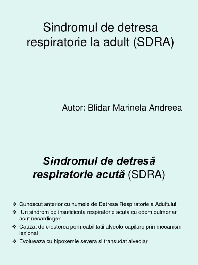 vizitati articolul complet aici : https://slideplayer.gr/slide/14658035/ Care este tratamentul sindromului de detresa respiratorie acuta? Simptomele sindromului de detresă respiratorie includ scurtarea respirației. La examenul radiologic se evidentiaza :